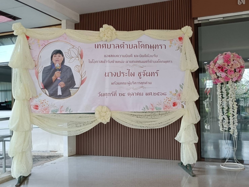 วันที่ 24 ตุลาคม 2568 เวลา 09.00 น.เป็นต้นไป เทศบาลตำบลโคกพุทราได้จัดพิธีต้อนรับ นางประไพ ชูจันทร์ เพื่อเข้ารับตำแหน่งนายกเทศมนตรีตำบลโคกพุทรา และคณะผู้บริหาร โดยได้รับเกียรติจากคณะสันนิบาตเทศบาลจังหวัดอ่างทองดำเนินการเปิดพิธีและมอบช่อดอกไม้ พร้อมด้วยสมาชิกสภาเทศบาล และประชาชนในเขตเทศบาลที่มาร่วมมอบของที่ระลึกและแสดงความยินดี