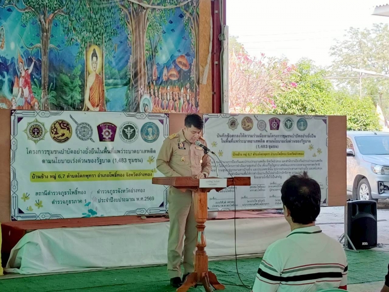 วันที่ 11 กุมภาพันธ์ 2569 เวลา 14.00 น. เป็นต้นไป เทศบาลตำบลโคกพุทราได้เข้าร่วม “โครงการชุมชนบำบัดอย่างยั่งยืนในพื้นที่แพร่ระบาดยาเสพติด” ตามนโยบายเร่งด่วนของรัฐบาล (1,483 ชุมชน) ประจำปีงบประมาณ พ.ศ.2569 โดยมี นายพิสิษฐ์ วิระขันคำ นายอำเภอโพธิ์ทอง เป็นประธานในพิธีเปิด พร้อมด้วย ศูนย์อำนวยการป้องกันและปราบปรามยาเสพติดจังหวัดอ่างทอง ตำรวจภูธรจังหวัดอ่างทอง สถานีตำรวจภูธรโพธิ์ทอง โรงพยาบาลโพธิ์ทอง รพสต.โคกพุทรา สาธารณสุขอำเภอโพธิ์ทอง เทศบาลตำบลโคกพุทรา กำนัน ผู้ใหญ่บ้าน หมู่ที่ 6 - 7 เจ้าหน้าที่ที่เกี่ยวข้อง นักเรียน และประชาชนเข้าร่วมโครงการอย่างพร้อมเพรียง