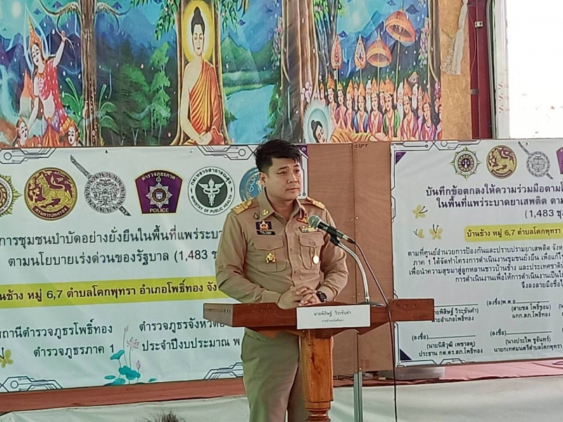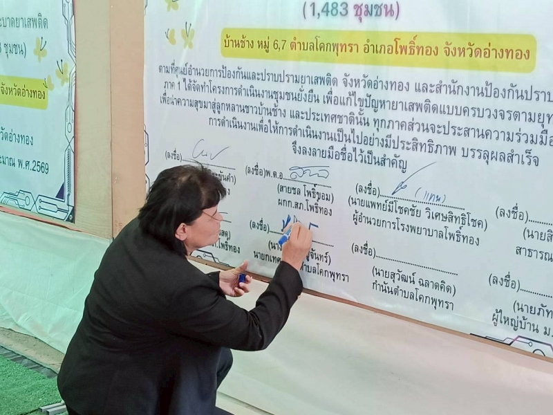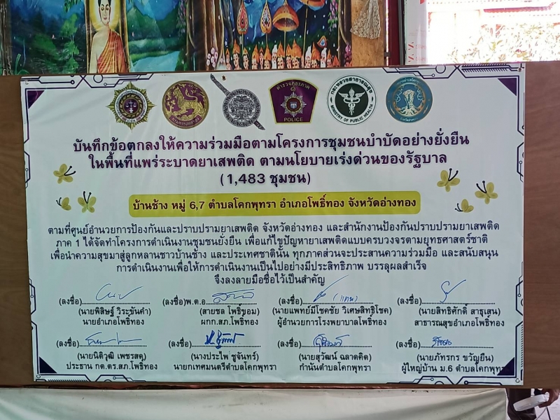 ในการนี้ เทศบาลตำบลโคกพุทราโดยนางประไพ ชูจันทร์ นายกเทศมนตรีเทศบาลตำบลโคกพุทรา และหน่วยงานที่เกี่ยวข้อง ได้ร่วมลงนามในบันทึกข้อตกลง เพื่อขับเคลื่อนการดำเนินงานให้เกิดผลอย่างเป็นรูปธรรม เสริมสร้างความเข้มแข็งให้กับชุมชน ลดการแพร่ระบาดของยาเสพติด และสร้างความปลอดภัยในพื้นที่ตำบลโคกพุทราอย่างยั่งยืน ณ วัดจันทราราม ตำบลโคกพุทรา อำเภอโพธิ์ทอง จังหวัดอ่างทอง