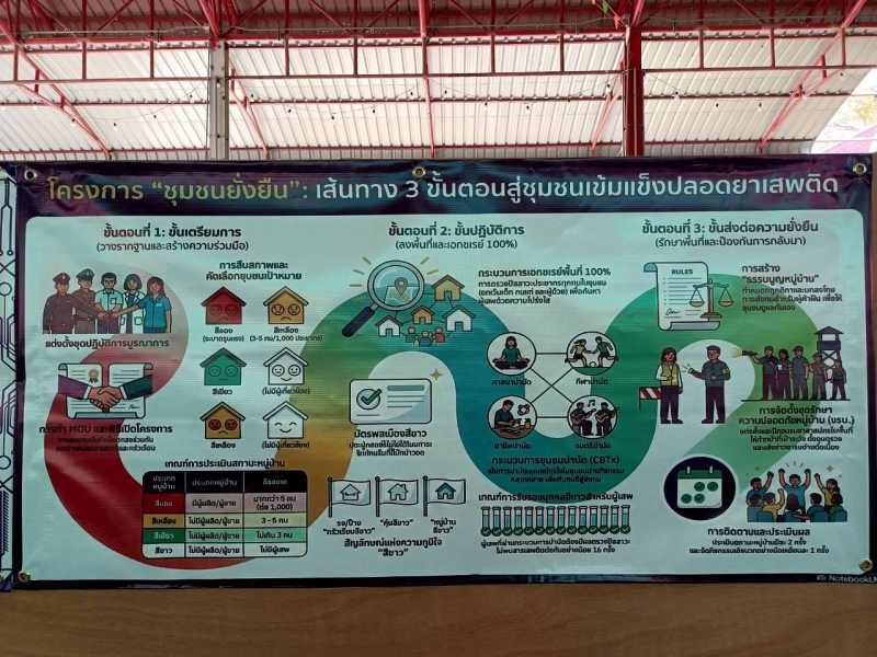 โครงการดังกล่าวดำเนินการภายใต้แนวทางของศูนย์อำนวยการป้องกันและปราบปรามยาเสพติดจังหวัดอ่างทอง และสำนักงานป้องกันและปราบปรามยาเสพติด ภาค 1 มีวัตถุประสงค์เพื่อแก้ไขปัญหายาเสพติดในชุมชนอย่างเป็นระบบ ครบวงจร ตามยุทธศาสตร์ชาติ โดยบูรณาการความร่วมมือจากทุกภาคส่วน ทั้งฝ่ายปกครอง ตำรวจ สาธารณสุข ผู้นำท้องถิ่น และภาคประชาชน